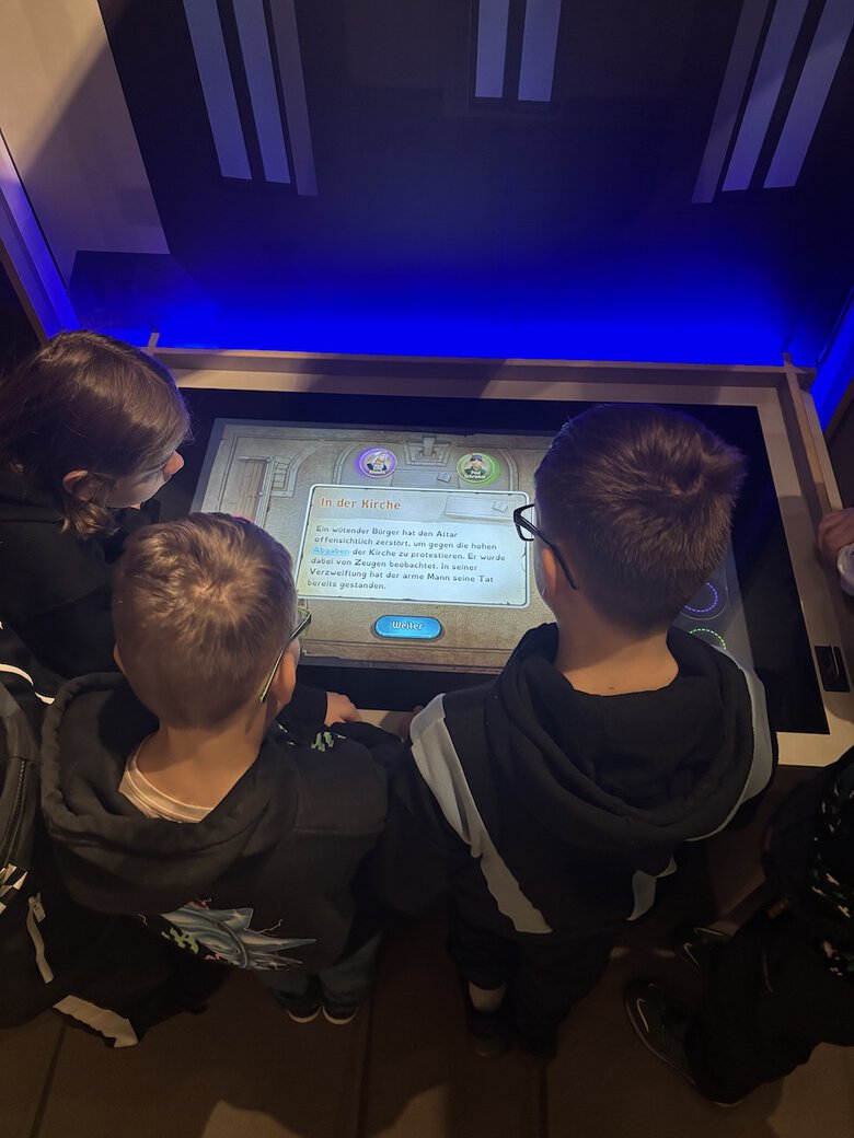In der Ausstellung „1525 — Aufstand für Gerechtigkeyt“ konnten wir mit vielen interaktiven Elementen eine Menge über die damalige Zeit herauszufinden. Ein spannender Fakt, den wir kennengelernt haben war: Die meisten Menschen konnten im Mittelalter nicht lesen.