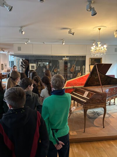 In der Ausstellung begaben sich die Schülerinnen und Schüler auf eine Entdeckungstour durch Händels Leben. Neben interessanten Geschichten gab es auch viele historische Instrumente zu sehen – und sogar zu hören. Für staunende Gesichter sorgte vor allem die Erkenntnis, dass die UEFA Champions League Hymne stark auf Händels Krönungshymne „Zadok the Priest“ (1727) basiert.