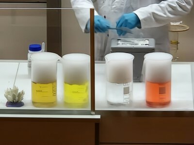 Zum Abschluss des Tages konnten die Teilnehmenden eine spannende Show-Vorlesung erleben, in der chemische Experimente anschaulich präsentiert wurden und die vielfältigen Aspekte der Chemie noch einmal eindrucksvoll demonstriert wurden.