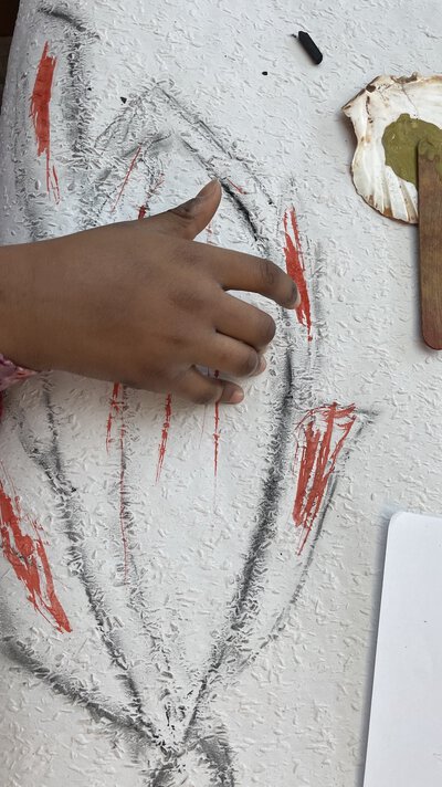 Ein besonderer Höhepunkt war die Gestaltung eigener Krafttiere auf Tapete (der Höhlenwand des 21. Jahrhunderts) mit selbstgebauten Pinseln aus Pferdehaaren und Pigmenten. Dabei konnten die Erkenntnisse aus der Führung durch die Ausstellungsbereiche praktisch und kreativ umgesetzt werden.