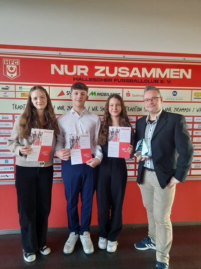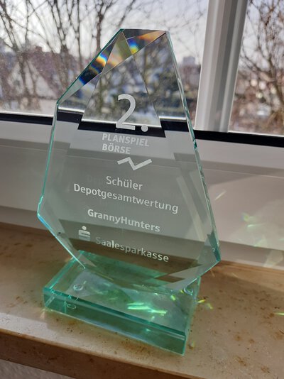 Unser Team GrannyHunters belegte dabei von 274 Teams und 593 Teilnehmerinnen und Teilnehmern den 2. Platz im Geschäftsgebiet der Saalesparkasse. Am Freitag, dem 8. März 2024, waren um 15 Uhr die drei besten Teams zur Preisverleihung in das Leuna-Chemie-Stadion in Halle (Saale) eingeladen. Dabei freuten sich die teilnehmenden Siegerteams über Gutscheine im Wert von je 30 bis 75 Euro und eine exklusive Stadionführung plus Catering in der VIP-Lounge. Im Planspiel Börse erwerben Jugendliche und junge Erwachsene fundierte finanzielle Bildung, um in Zukunft eigene Finanzentscheidungen verantwortungsvoll treffen zu können.