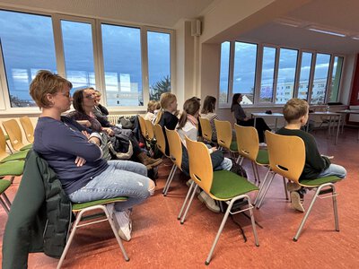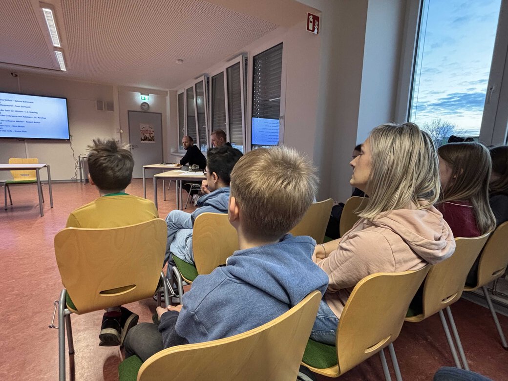 Und Langeweile kam am Nachmittag des 4. Dezembers 2025 ganz bestimmt nicht auf, als sich die Siegerinnen und Sieger der Klassenentscheide im Vorlesen in unserer Aula versammelten: Frau Dobrovsky als verantwortliche Deutschlehrerin hatte zum Schulentscheid des Vorlesewettbewerbs eingeladen, der auch in diesem Schuljahr von der Stiftung Buchkultur und Leseförderung des Börsenvereins des Deutschen Buchhandels veranstaltet wird.