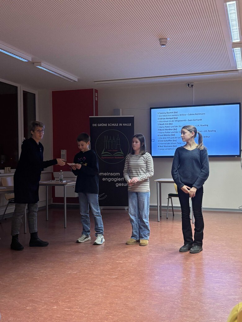 Am 4. Dezember fand der diesjährige Schulentscheid unserer 6. Klassen im Vorlesewettbewerb statt. Wir blicken auf dieses Schulereignis zurück und stellen die Ergebnisse sowie eine strahlende Siegerin vor.