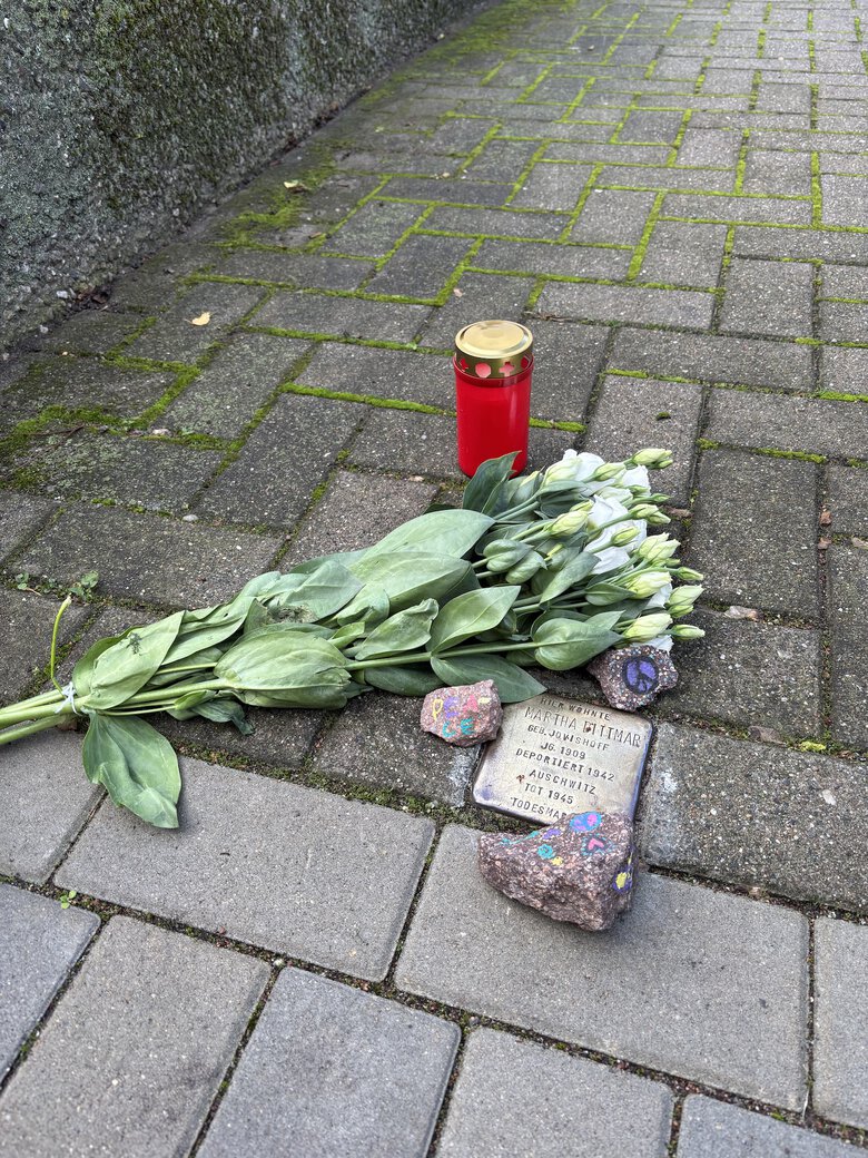 Den Auftakt machte am 10. November der Besuch der von unserer Schule gestifteten Stolpersteine. Klassenvertreterinnen und -vertreter aller Jahrgänge gestalteten kleine Gedenkmomente und setzten sich vor Ort mit den Biografien der Opfer auseinander. Am Nachmittag folgte eine eindrucksvolle Lesung zu Martha Dittmar in der Aula, die den historischen Kontext und das persönliche Schicksal spürbar nahbrachte.