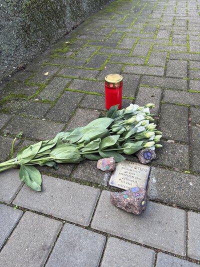 Am Dienstag wurden im Atelier Steine gestaltet, die anschließend an den Stolpersteinen niedergelegt wurden. Das offene Format in der Hofpause ermöglichte es vielen, eigene Botschaften der Erinnerung sichtbar zu machen.