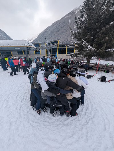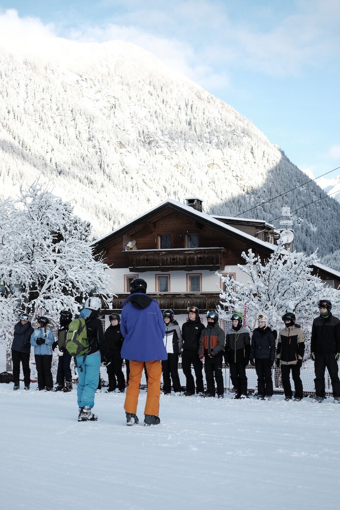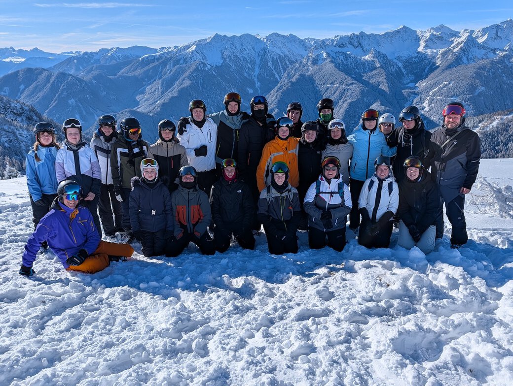 Am Morgen des 24.01.26 machten sich 22 Schülerinnen und Schüler gemeinsam mit vier Betreuern im Rahmen des Oberstufenkurses Sport auf den Weg nach Raas in Südtirol. Bei bester Laune startete die Gruppe in das winterliche Abenteuer. Nach rund elf Stunden Fahrt erreichten wir am Abend unser Ziel. Nach einem leckeren Abendbrot wurden die Zimmer bezogen – die Vorfreude und Spannung auf die kommenden Tage waren deutlich spürbar.