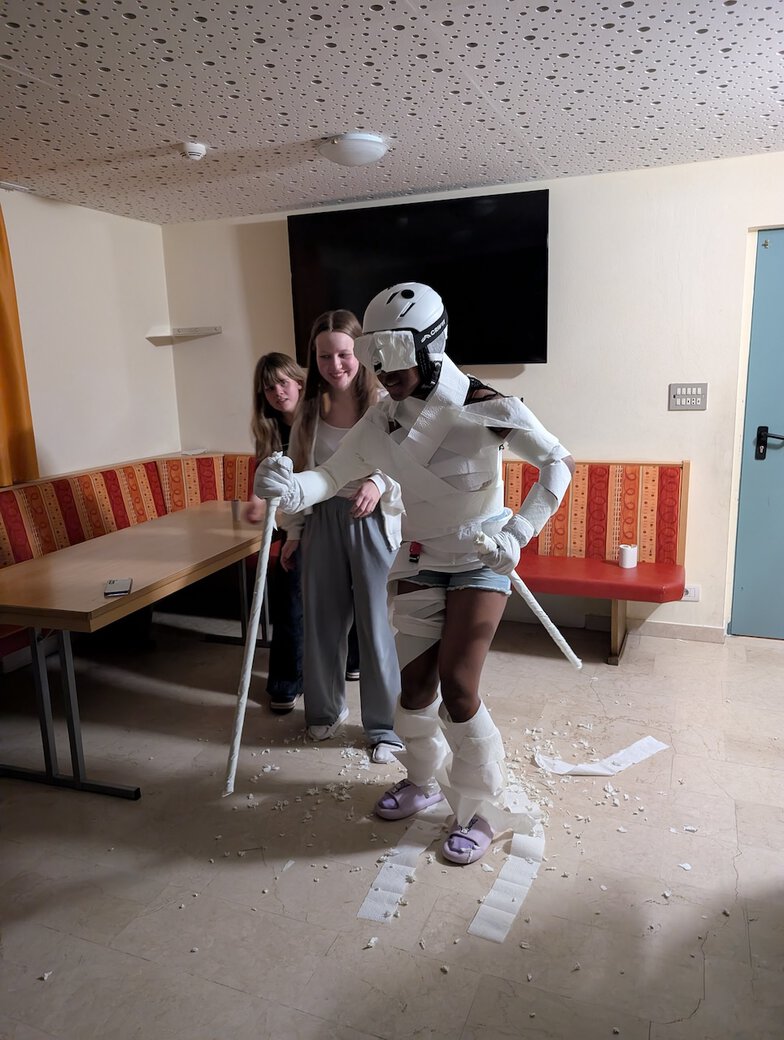 Ein würdiger Abschluss des Skikurses fand sich im letzten Abend: Die Schülerinnen und Schüler setzten die von Ullr (dem einzig wahren Skigott) aufgetragenen Aufgaben mit viel Kreativität und Humor um. Für beste Unterhaltung war gesorgt. So konnten sich die Betreuerinnen und Betreuer nach fünf intensiven Tagen einmal zurücklehnen und den Abend genießen. Und schlussendlich ging es dem Holzmichl auch wieder gut.