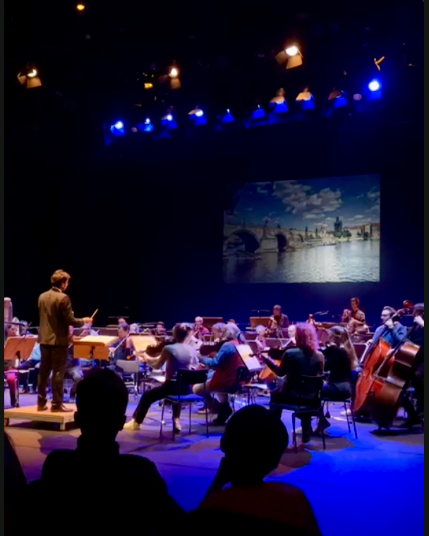 Im Mittelpunkt stand dabei die faszinierende Welt der Programmmusik – also Musik, die Geschichten erzählt und Bilder im Kopf entstehen lässt. Gemeinsam mit dem Orchester begaben wir uns auf eine klangvolle Reise entlang der Moldau. Vom leisen Ursprung der Quellen ging es über zu einer Bauernhochzeit und Jagdszenen bis hin zu laut rauschenden Stromschnellen und schließlich landeten wir in der tschechischen Hauptstadt Prag. Mit Bedřich Smetanas Werk „Die Moldau“ konnten wir eindrucksvoll hören, wie der Flussverlauf musikalisch lebendig wird.